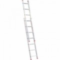 Univerzální žebřík ze dvou dílů po deseti příčkách, vhodný pro profesionální užívání. Možnost použít jako štafle nebo jako výsuvný opěrný žebřík. Vyšší bezpečnost zajišťují ochranné napínací pásy a protiskluzové plastové patky. Základna na jedné straně žebříku je pro vyšší stabilitu rozšířená. Splňuje normu ČSN EN 131 a je opatřen TÜV certifikátem.Hliníkový žebřík PROFI, 2 x 10 příček, Alpos Alu